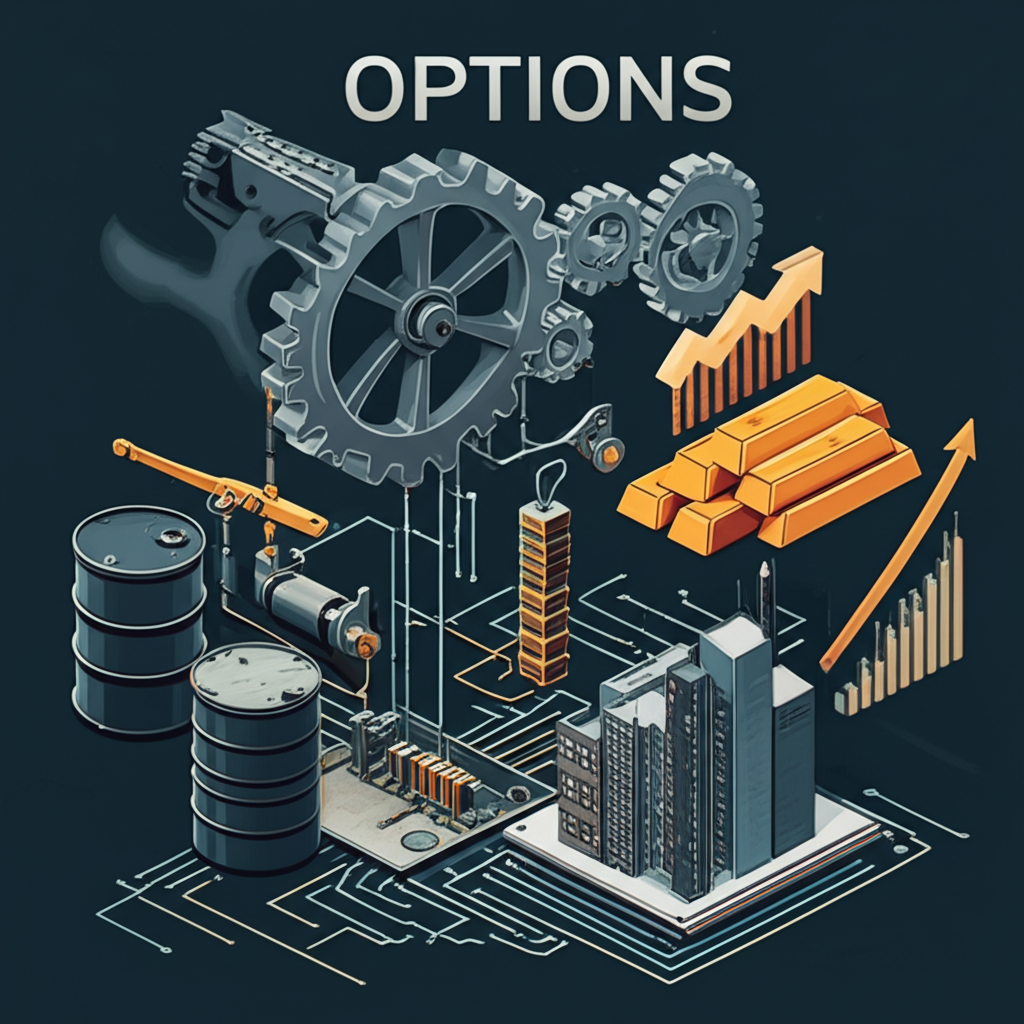 ภาพประกอบออปชันในฐานะเครื่องมือทางการเงินที่ซับซ้อนและทรงพลังพร้อมสินทรัพย์อ้างอิง