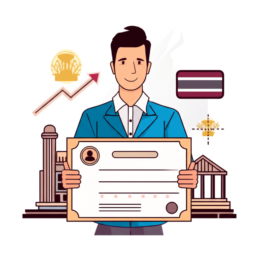นักลงทุนไทยถือพันธบัตรรัฐบาลอย่างมั่นใจ ท่ามกลางสัญลักษณ์ของความมั่นคงและการเติบโตในสไตล์ภาพประกอบ